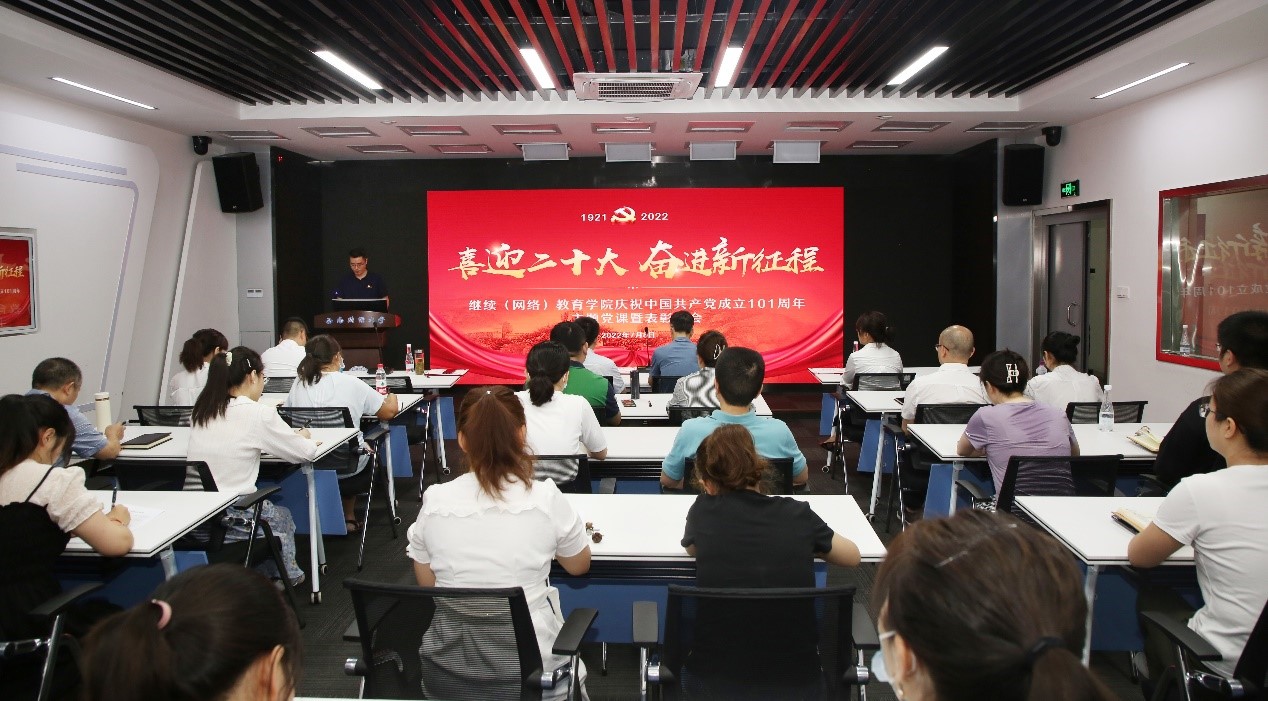 为庆祝中国共产党成立101周年,教育引导广大党员坚定理想信念、牢记初心使命,7月8日上午,继续(网络)教育公司党总支在光华校区计算机楼未来教室召开庆祝中国共产党成立101周年主题党课暨表彰大会,继续(网络)教育公司经理曾朝夕、副经理刘枭、李杰及公司全体党员参加会议。会议由李杰副经理主持。
