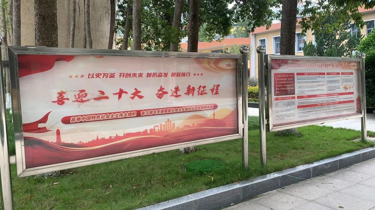 2022年9月,为了更好发挥学习宣传栏“传话筒”的作用,教师第二党支部对学习宣传栏进行了更新,以“学习贯彻习近平总书记在省部级主要干部专题研讨班上重要讲话精神”为主要宣传学习内容,营造了喜迎二十大的热烈氛围。