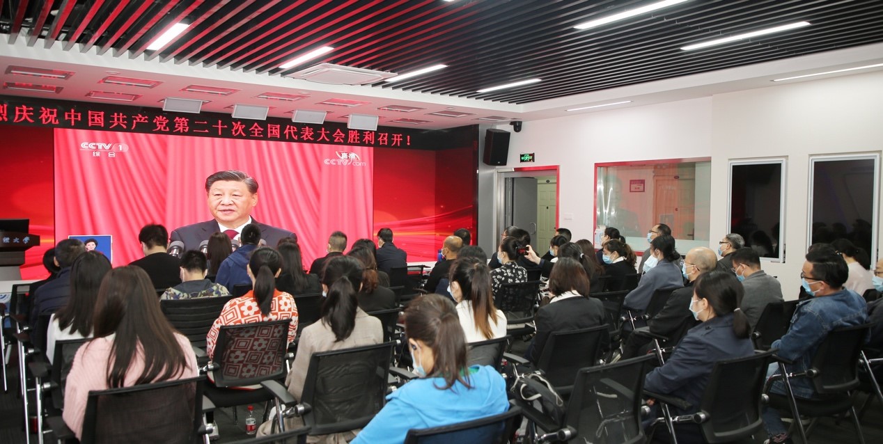 10月16日上午、举国关注、举世瞩目的中国共产党第二十次全国代表大会在北京隆重开幕。继续(网络)教育公司领导班子成员、教师第一、二党支部党员、民主党派代表、职工代表在光华校区未来教室集中收听收看党的二十大盛况,其他职工在家收看大会直播。
