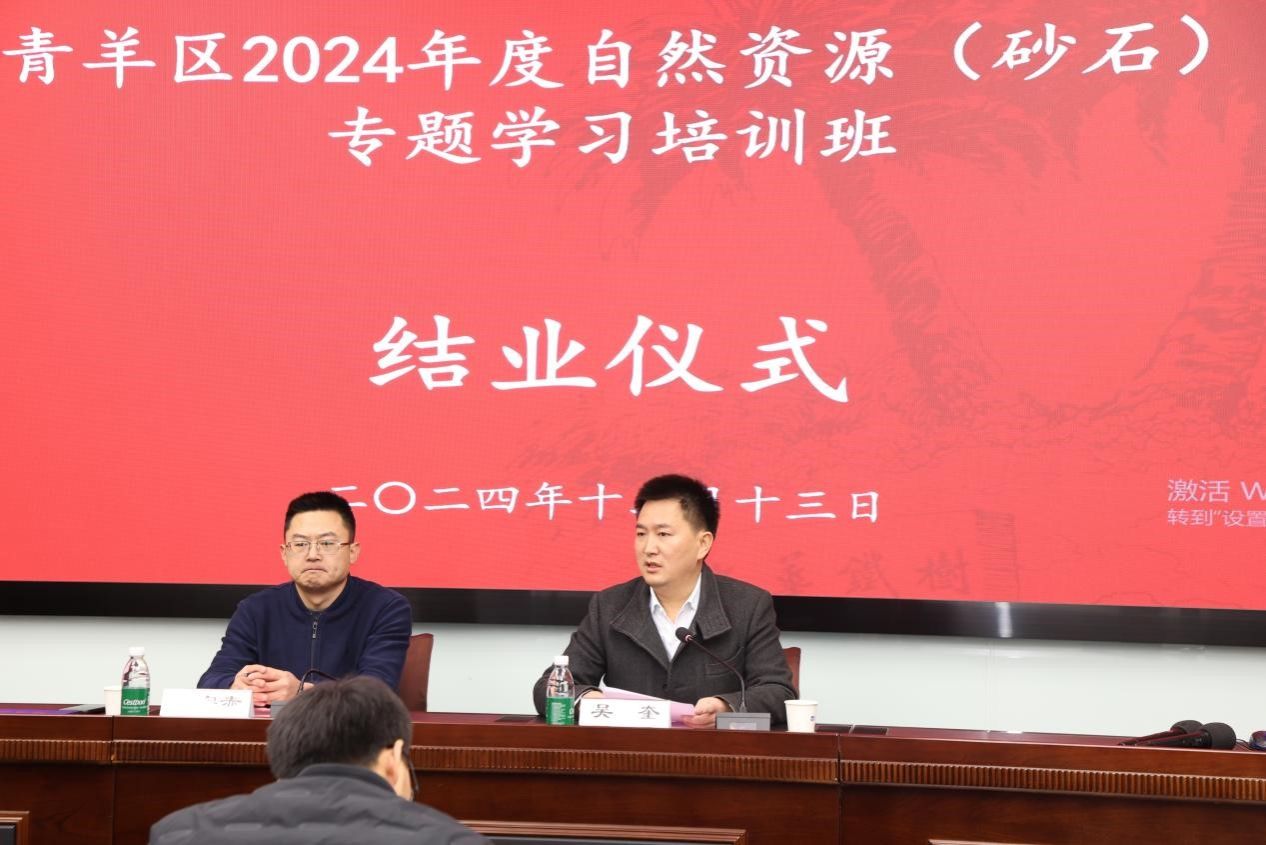 近日,由k1体育培训中心承办的“青羊区2024年度自然资源(砂石)专题学习培训班”圆满落幕,近50人参加本次培训。成都市青羊区人民政府党组成员、副区长吴奎出席结业仪式并作总结讲话。