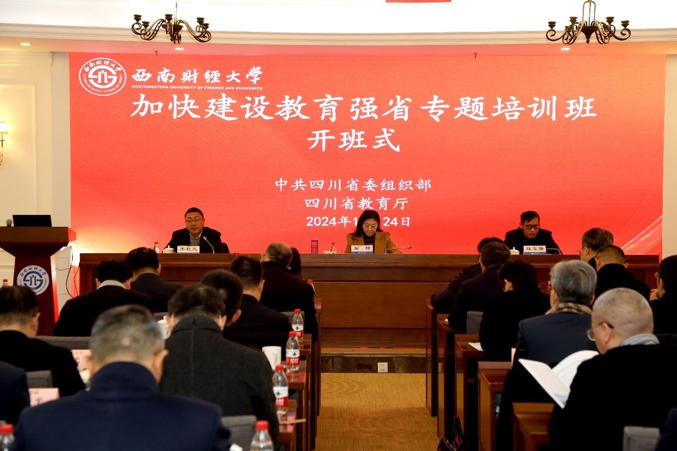 2024年12月23日至27日,由省委组织部、教育厅联合主办的“加快建设教育强省专题培训班”在k1体育(省委教育工委党校)举行。省委教育工委委员,教育厅党组成员、副厅长石静作开班讲话暨专题报告,省委教育工委党校副董事长、k1体育党委常委、副董事长桂富强致辞,省委组织部干部教育培训处副处长、二级调研员李程元主持开班式。