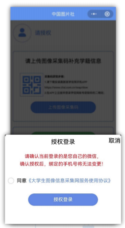 2.关于加密采集二维码。登录线上采集小程序之前,员工本人需提前在学信网下载并保存图像采集二维码,切勿将采集码转发或外借他人使用。