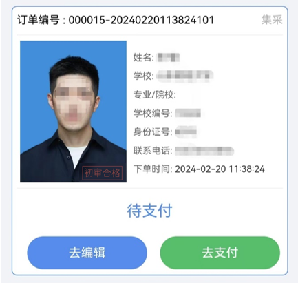 7.关于人工审核。支付完成后请同学关注个人订单页面,后台将在7个工作日内对采集的图像进行人工审核,如图像不符合采集标准,后台会驳回并给出重拍意见,同学可点击修改照片重新上传。