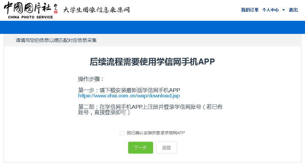 2.准备好个人电子版蓝底证件照片。照片须严格按技术规范拍摄,原图上传,不得使用软件对人像面部特征进行修改,确保后期学信平台人像比对顺利通过。照片必须是标准JPG格式,照片规格:照片大小大于30kb(宽*高480*640)。