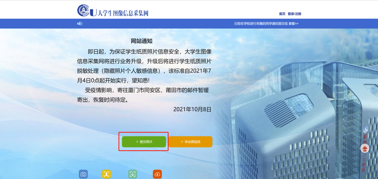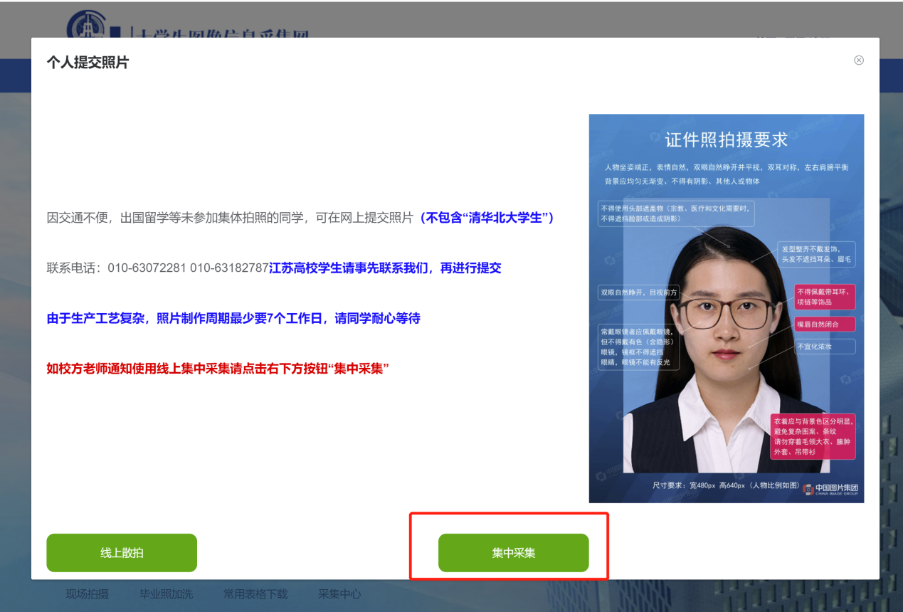 (二)、点击“提交照片”__>“集中采集”,按照提示进行注册、登录