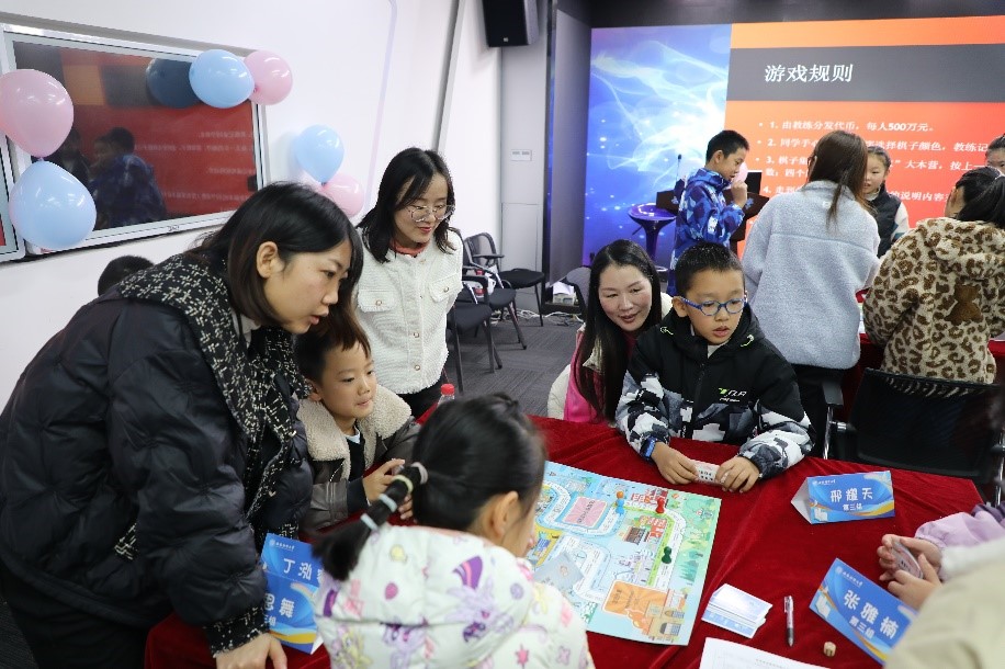 游戏过程中,不仅小朋友们全情投入,运筹帷幄,沉浸其中,旁边观战的家长们也个个摩拳擦掌,只恨不能亲自上阵,加油呐喊与欢声笑语充满了现场。当时间来到最后五分钟,每一组的气氛都格外的紧张,游戏节奏也开始加快,终于在一声“停止”下,结束了这场酣畅淋漓的产业大战。随着每一组大小朋友们屏息结算着手中的“不动产”、“股票”、“存款”等财富,小组获胜者的欢呼声也此起彼伏的响起,代表着一场游戏的结束,也象征着建立财富认知的开始。