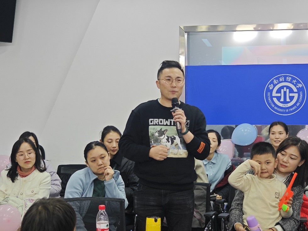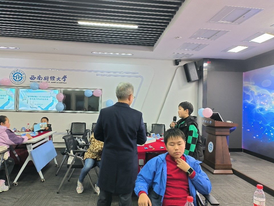 游戏结束后,潘席龙副教授对游戏中大小朋友的表现进行了点评和总结,表扬了家长们没有以成年人的思维去干扰孩子们在游戏中的思考与表现,更称赞了小朋友们在游戏中不仅遵守游戏规则,且在当整体“市场动荡”时,没有对身边的对手落井下石,而是纷纷施以援手,共度难关,西财精神也于此刻薪火相传。