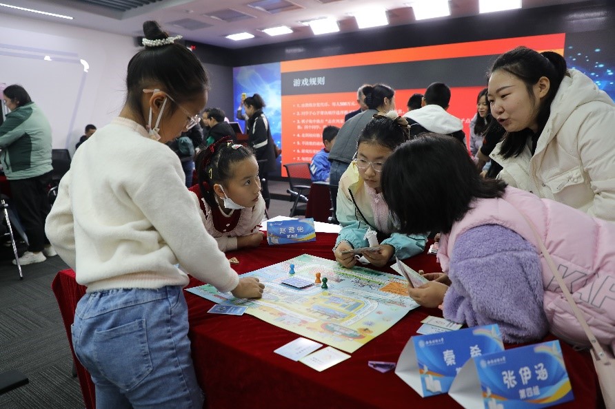 “财务自由是心灵自由的基础,财富是实现其他目标的条件”。潘席龙副教授首先用通俗易懂的语言为在场大小朋友讲授了“什么是财商”、“青少年为什么要学财商”以及“五德财商桌游的特点和游戏规则”。随后,小朋友们分组在带教老师的主持下展开桌游实战。通过在与传统观念的思想碰撞中、在小朋友间激烈的桌游“厮杀”中、在家长与孩子的全新体验中,近距离、多维度、多方面的了解财商、感受财商、建立财商。