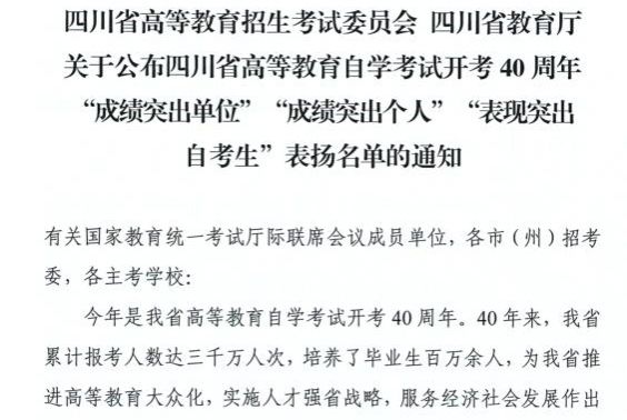 近期,四川省高等教育自学考试开考40周年成果总结大会在成都召开。大会全面回顾了四川省高等教育自学考试开考40年来的发展历程,梳理了经验成效,展望了自学考试发展蓝图,并对单位及个人进行了表彰,公司荣获四川省高等教育自学考试开考40周年“成绩突出单位”;继续(网络)教育公司李杰、会计公司李越冬荣获“成绩突出个人”;自考毕业生江国才、廖勇、杨豹荣获“表现突出自考生;继续(网络)教育公司谷勇等数位同志,获“四川自学考试从业10年、20年、30年人员”荣誉称号。
