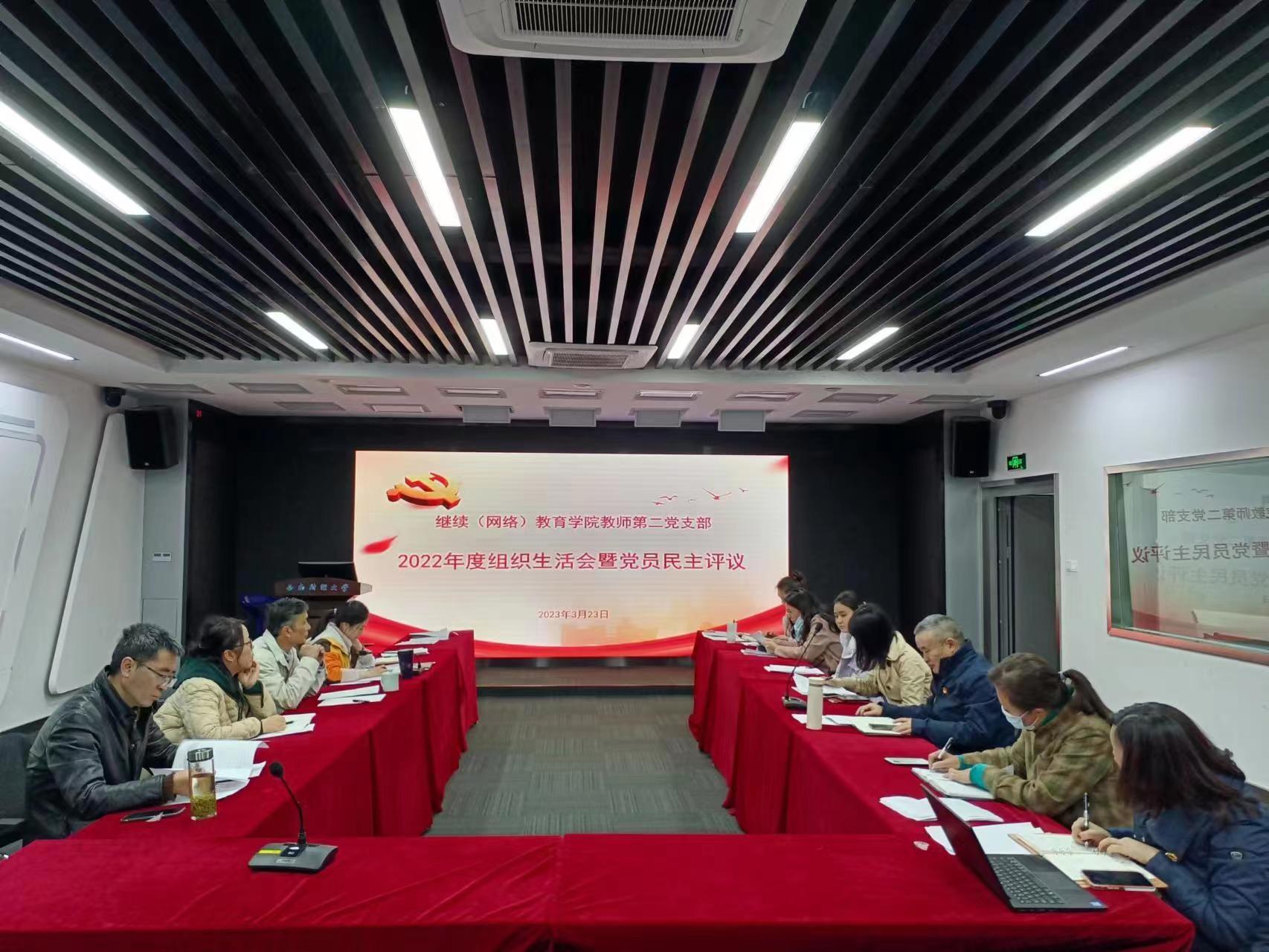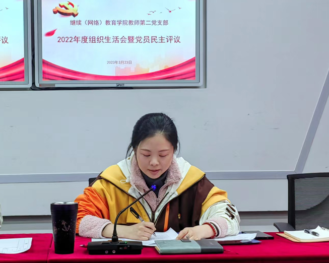 3月23日,继续(网络)教育公司教师第二党支部在光华校区未来教室召开2022年度组织生活会暨民主评议党员大会。会议由党支部书记李自利同志主持,党总支委员曾朝夕、李杰同志以普通党员身份参加本次会议。