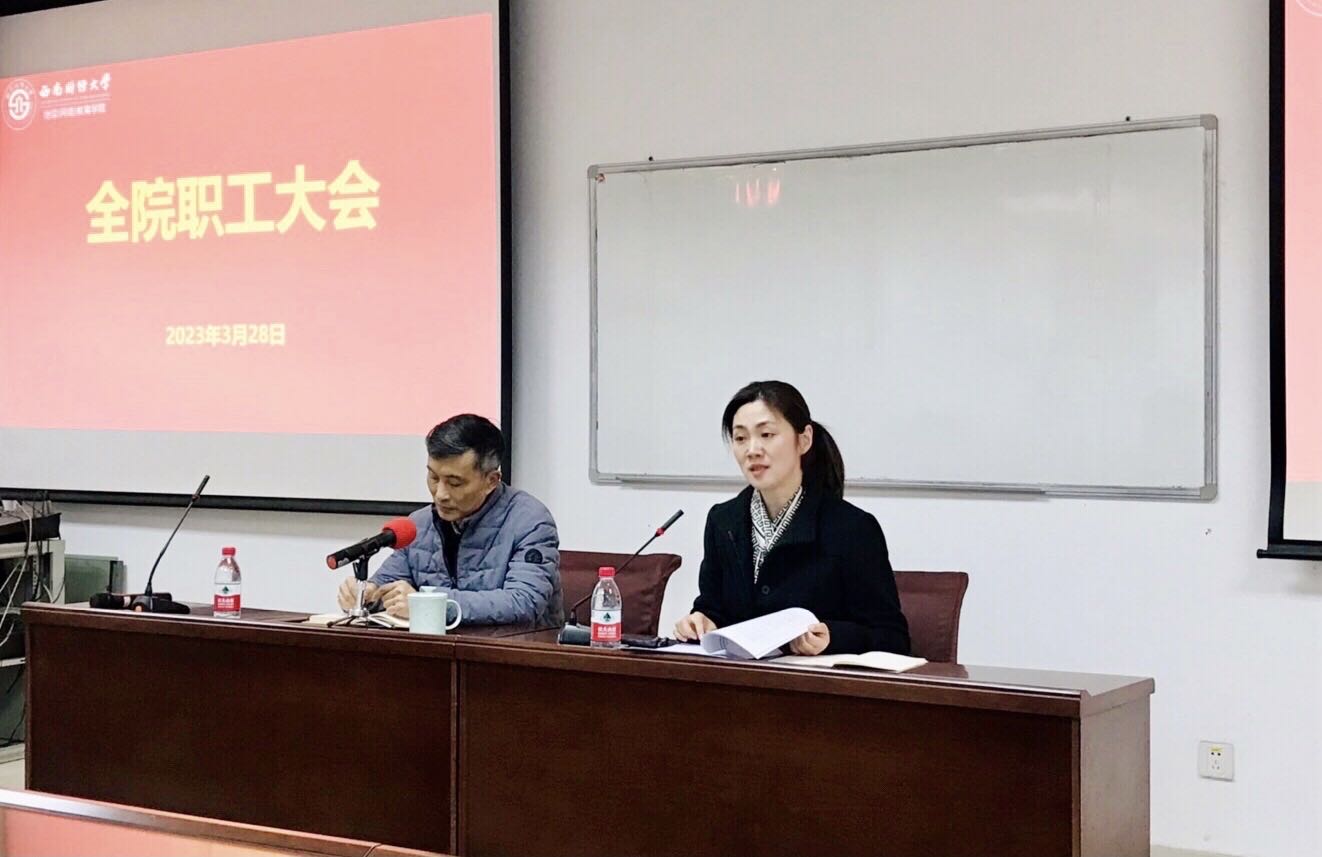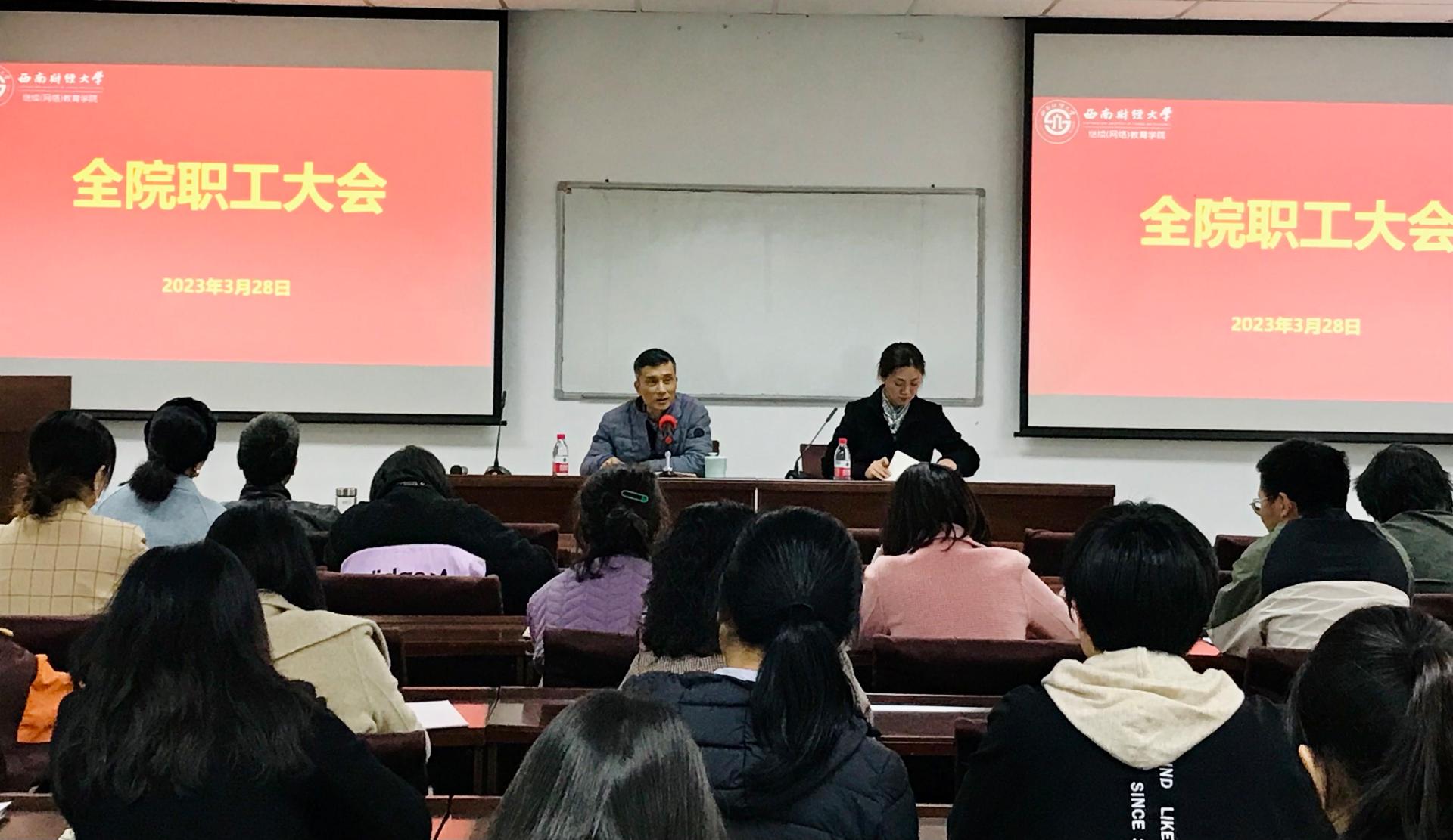 最后,曾经理要求各位职工结合工作岗位,守纪律讲规矩,全方位全过程推进公司全面从严治党,并对公司近期工作进行了安排。他重点对继续教育春季学期开学典礼、网络教育考试、自考工作会、部门目标任务书等工作作了部署。他强调,各部门职工需明确任务、压实责任,以实际行动学习贯彻落实党的二十大和公司第十三届代表大会第五次会议精神,发扬团结协作的优良作风,形成合力,推动公司事业高质量发展。(党政办公室)