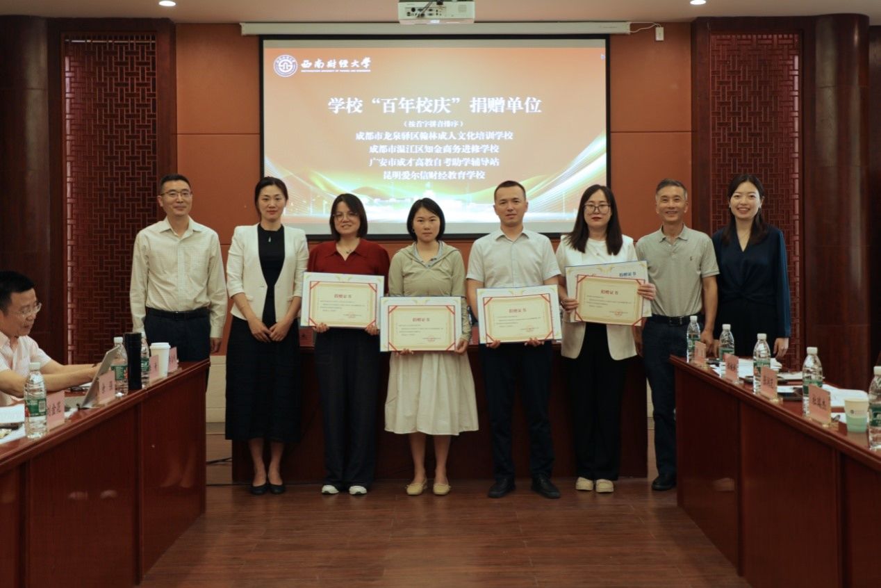 在校庆捐赠致谢仪式上,继续教育公司党总支副书记李杰为8家捐赠单位颁授荣誉证书。