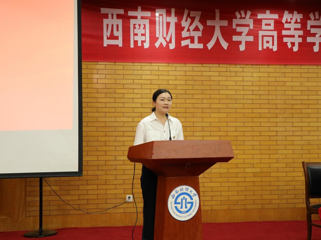 毕业生代表陈雅熙分享了追梦奋斗的西财时光,表达了对母校和老师的感激之情,表示将继续践行“经世济民、孜孜以求”的西财精神,挺膺担当、砥砺奋斗,带着所学所获,投身社会,书写更加灿烂辉煌的青春篇章。