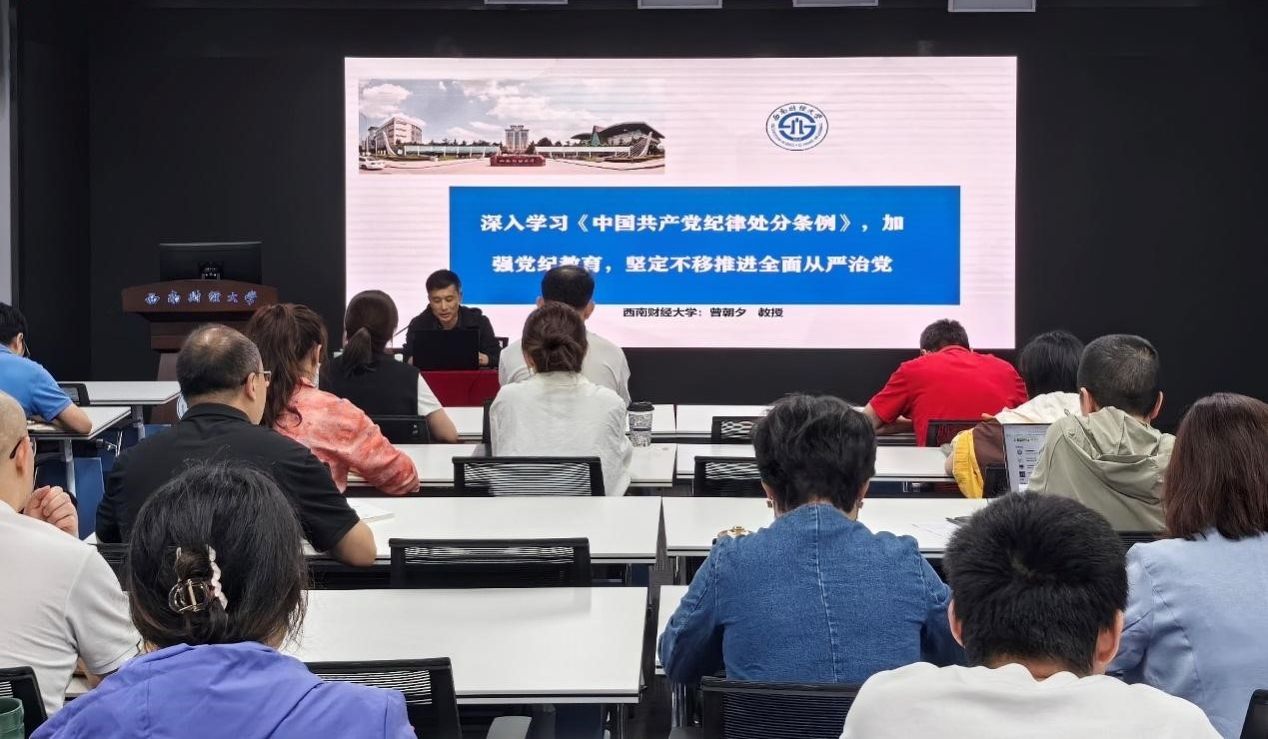 公司经理曾朝夕以“深入学习《中国共产党纪律处分条例》,加强党纪教育,坚定不移推进全面从严治党”为题,讲授专题讲座。他从腐败问题的本质和根源、十八大以来全面从严治党的部署与成就、新时代全面从严治党如何推进、加强党纪学习教育的基本要求等四个方面深入展开论述。他要求全体党员紧紧抓住党纪学习教育的契机,认真学习贯彻《中国共产党纪律处分条例》,严守政治纪律和政治规矩,用习近平新时代中国特色社会主义思想统一思想、统一意志、统一行动,捍卫“两个确立”,做到“两个维护”;树立正确的权力观、政绩观,深化改革健全制度,以制度管权;突出“严”的基调,把握作风建设地区性、行业性、阶段性特点,抓住普遍发生、反复出现的问题深化整改,从思想上固本培元,提高党性觉悟,增强拒腐防变能力。